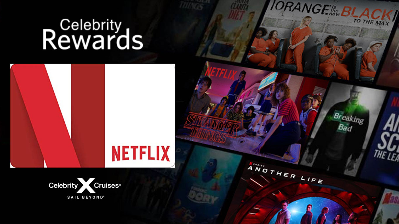 Netflix gift cards are the first reward up for grabs and each week, Celebrity Cruises will reveal a new weekly e-voucher to the Celebrity Rewards catalogue.