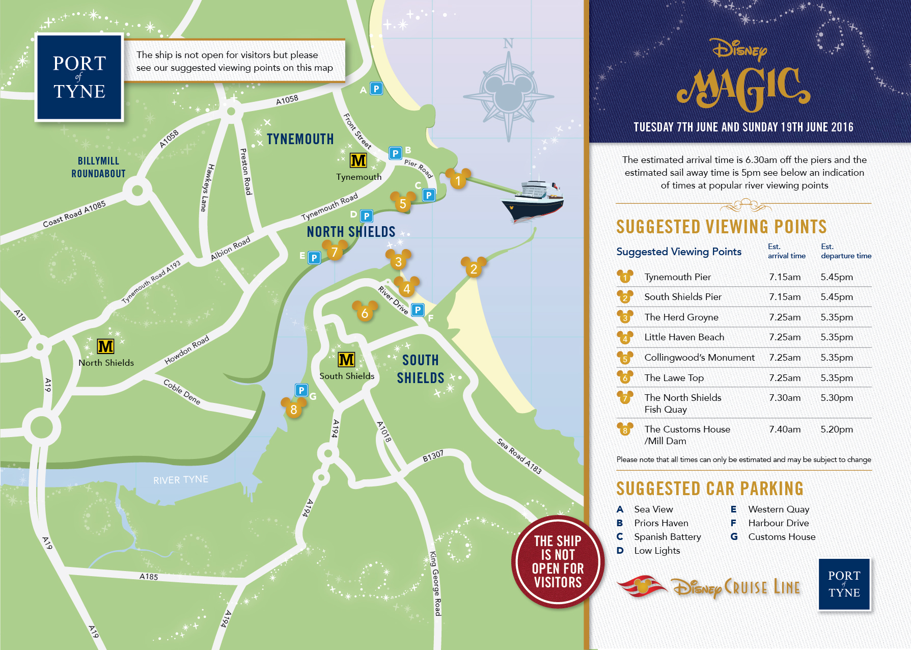As part of Disney Cruise Lines’ 12-night British Isles cruise arriving from Dover 5 June, the 294m long Disney Magic will be visiting the Port of Tyne, near Newcastle in North East England, on Tuesday 7 June.