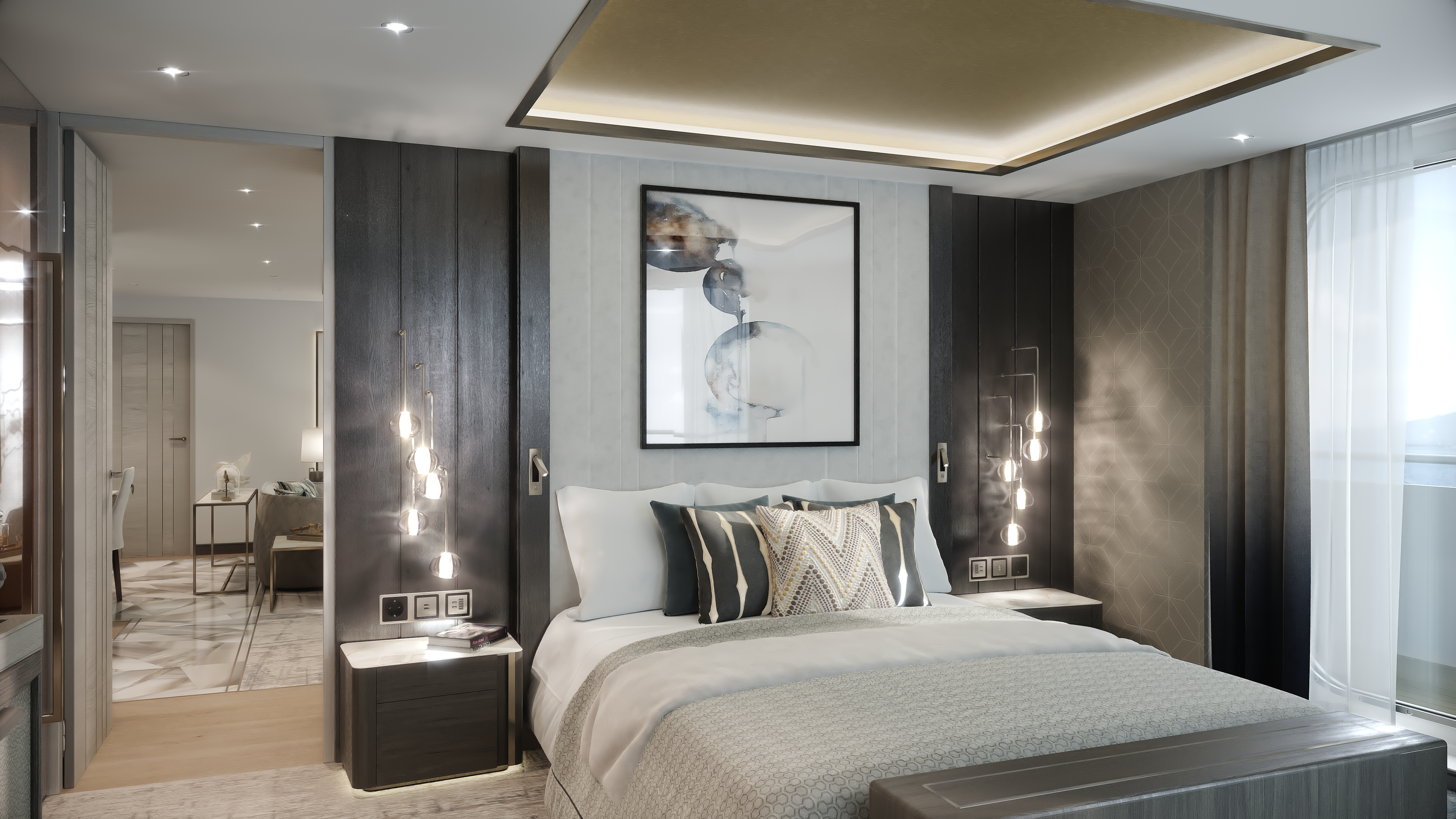 The 100 suites will include two Crystal Penthouse Suites (985 sq. ft. to 1,130 sq. ft.), eight Penthouse Suites (457 sq. ft.) and 90 Deluxe Suites (304 sq. ft.). The larger of the two Crystal Penthouse Suites features a two-bedroom layout, while the other one-bedroom plan connects to an adjacent Deluxe Suite through an adjoining entry, ideal for families and friends traveling together. Both offer dedicated dining areas and butler’s prep space for in-suite dining from any of Crystal Endeavor’s Michelin-level eateries. The Penthouse Suites and Deluxe Suites offer separate sleeping and sitting areas, private verandas and desk vanity areas.